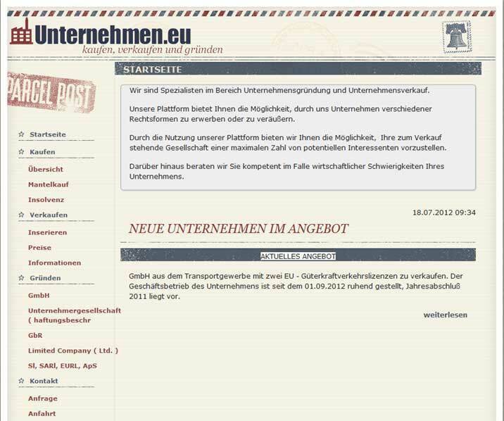 Informationen zur Unternehmensgründung und Unternehmensverkauf