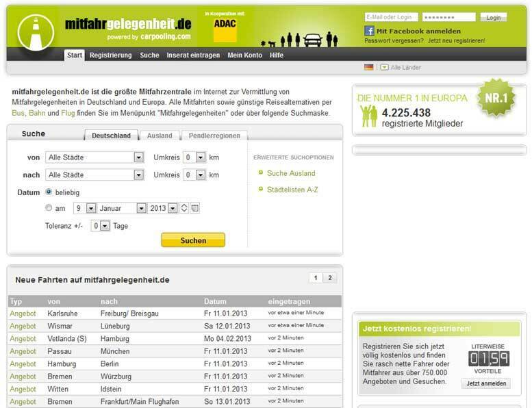 Benzin und Fahrkarte sparen durch Mitfahrgelegenheit.de