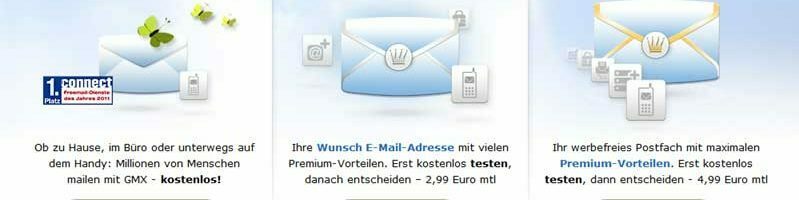 Im E-Mail-Bereich bietet Ihnen GMX.de folgende, teils kostenpflichtige, Produkte: